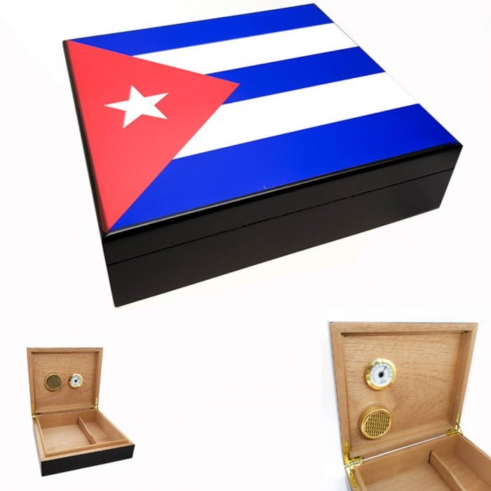 Μαύρος Υγραντήρας πούρων με την σημαία της Κούβας και εσωτερική επένδυση από ισπανικό κέδρο.